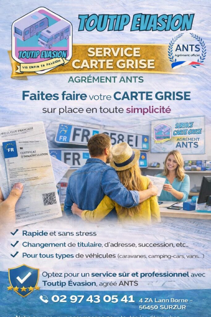 REF00104 Professionnel TOUTIP ÉVASION, spécialiste caravane, camping-car et van d’occasion, basé à ZA Lann Borne – 56450 Surzur (proche Vannes,