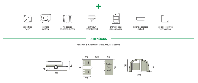 Elle peut être tractée par toutes les voitures, même les plus petites, elle n’offre presque pas de prise au vent et n’entraîne pas de surcoût aux péages des autoroutes.